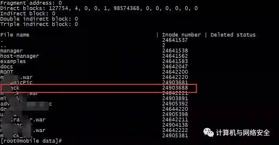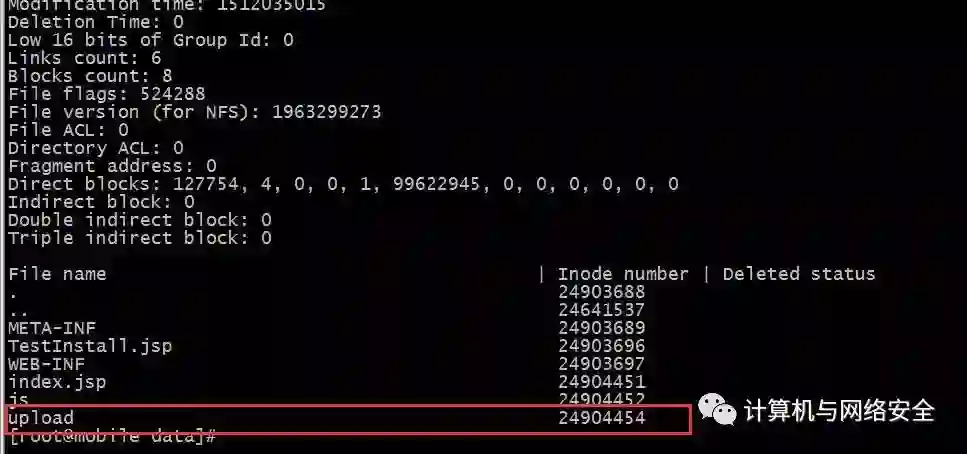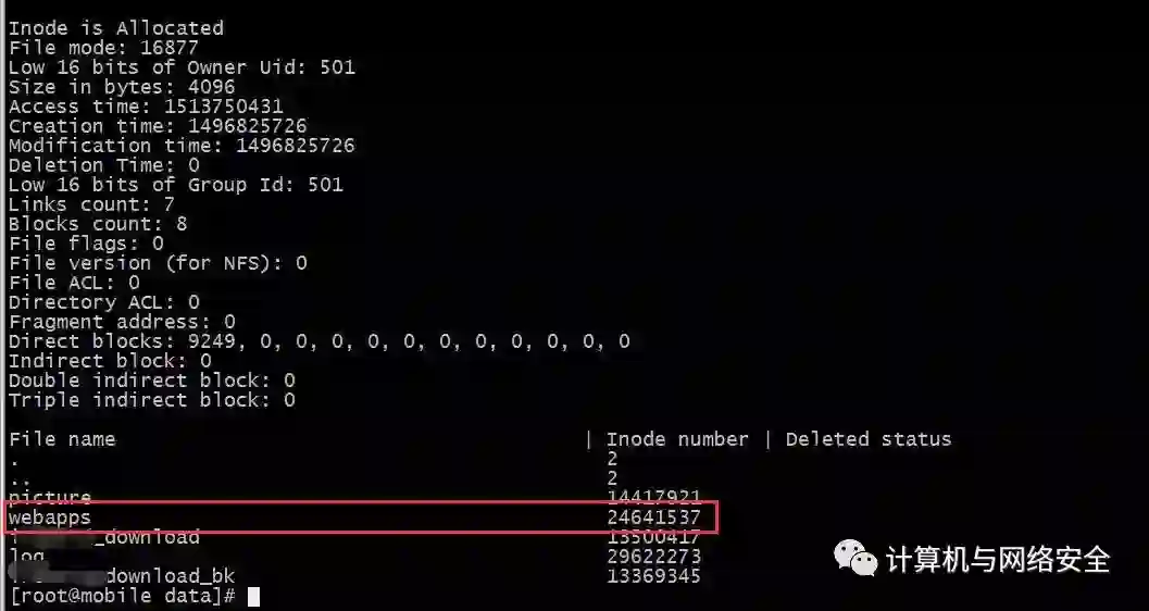 因为我的数据路径比较深,所以我们需要一步步查找,可以先从根分区 inode 查找