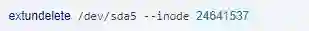 --restore-inode ino[,ino,...],恢复命令参数,表示恢复节点“ino”的文件,恢复的文件会自动放在当前目录下的RESTORED_FILES文件夹中,使用节点编号作为扩展名。