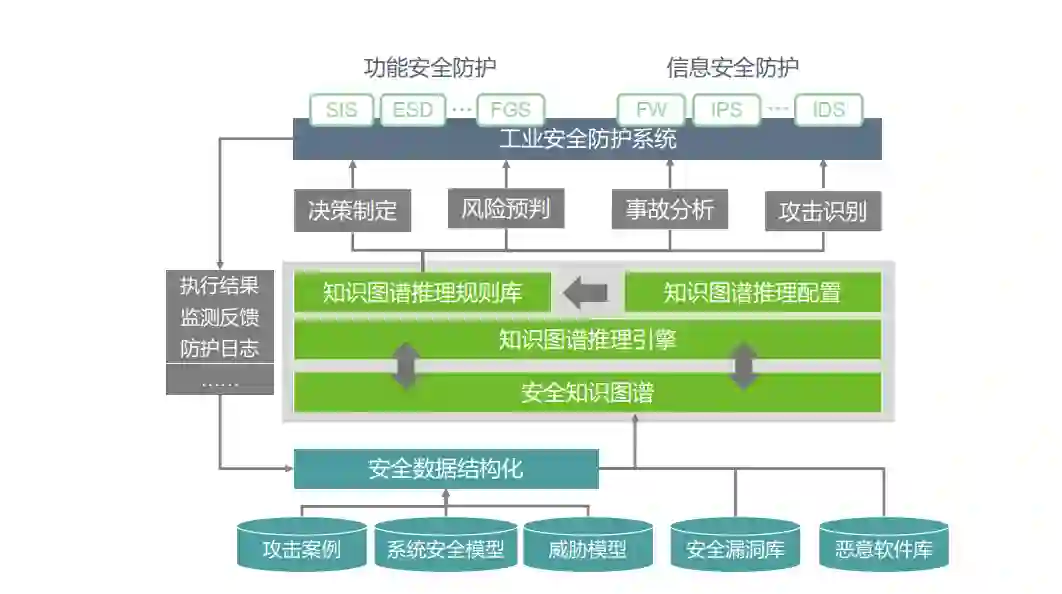 如上图所示,风险层通过功能安全和信息安全融合的知识图谱,从安全告警信息中识别潜在的安 全风险,评估系统安全风险对系统业务的影响,根据系统具体业务给出响应处理的优先级。