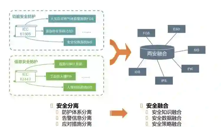 未来安全防护的趋势是将功能安全与信息安全相结合,以业务系统功能安全(Safety)的可用 性为目标和约束,再考虑信息安全(Security),通过对两类安全防护能力的优化设计,消除冲突,实现工业系统的两安融合,降低信息物理融合带来的信息安全风险。
