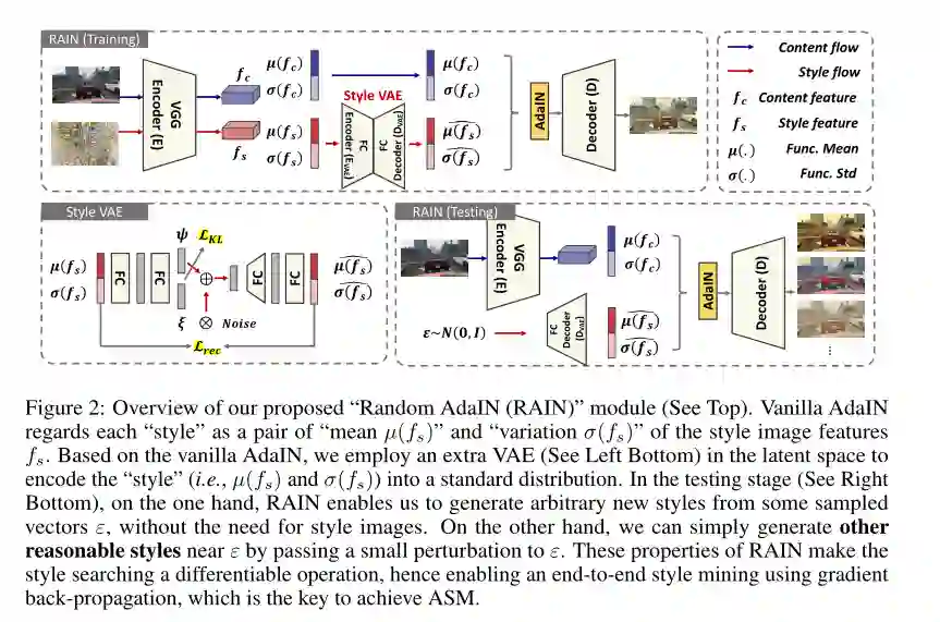 摘要:我们针对One-Shot无监督域自适应的问题。与传统的无监督域适应不同,它假定学习适应时只能使用一个未标记的目标样本。这种设置是现实的,但更具挑战性,在这种情况下,传统的自适应方法由于缺少未标记的目标数据而容易失败。为此,我们提出了一种新颖的对抗式风格挖掘方法,该方法将风格迁移模块和特定于任务模块组合成对抗的方式。具体来说,风格迁移模块会根据当前的学习状态,迭代搜索One-Shot目标样本周围的较难的风格化图像,从而使任务模型探索在不可知的目标领域中难以解决的潜在风格,从而增强了数据稀缺情况下的适应性能。对抗学习框架使风格迁移模块和特定于任务模块在竞争中彼此受益。在跨域分类和分割基准方面的大量实验证明,ASM在具有挑战性的One-Shot设置下达到了最新的自适应性能。