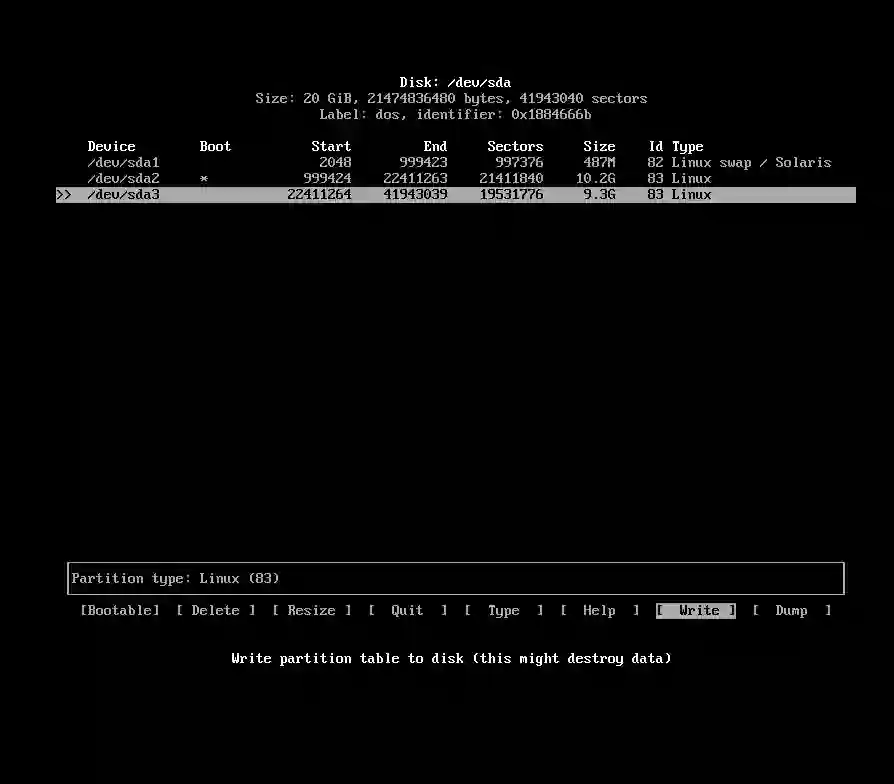 键入“yes”,以确认写入分区表。