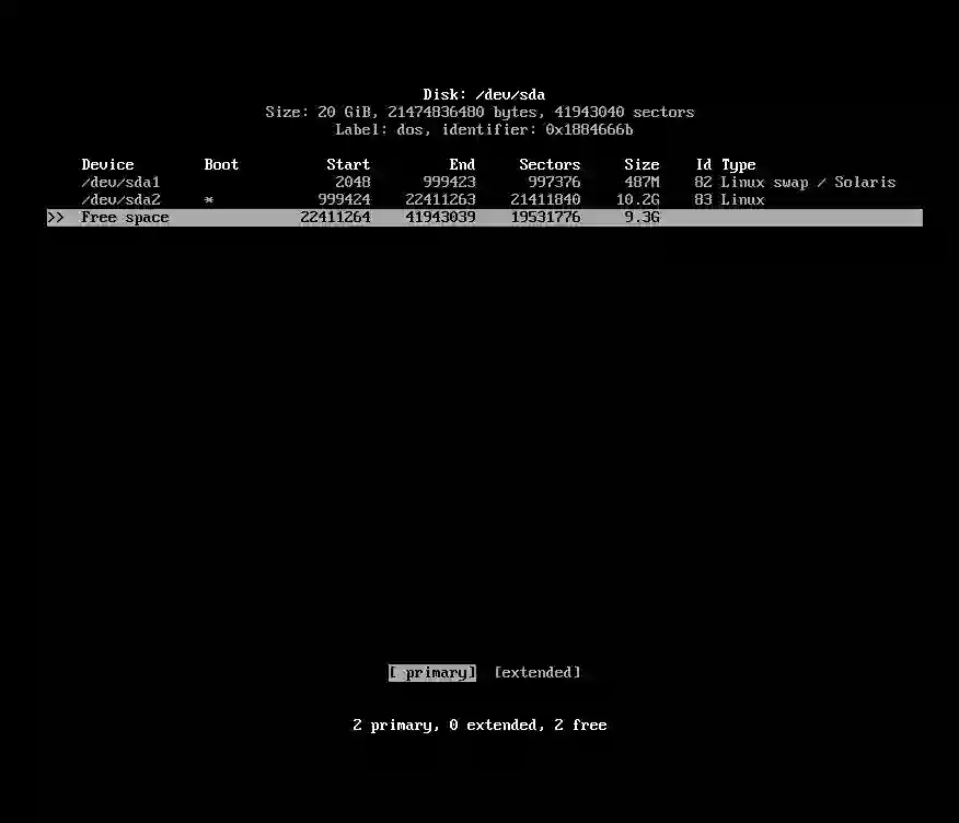 如下图所示,选择“primary”进行分区