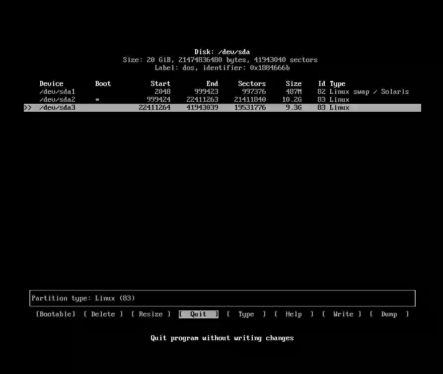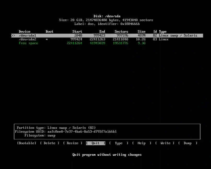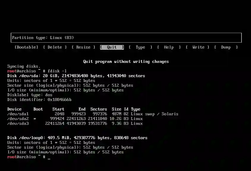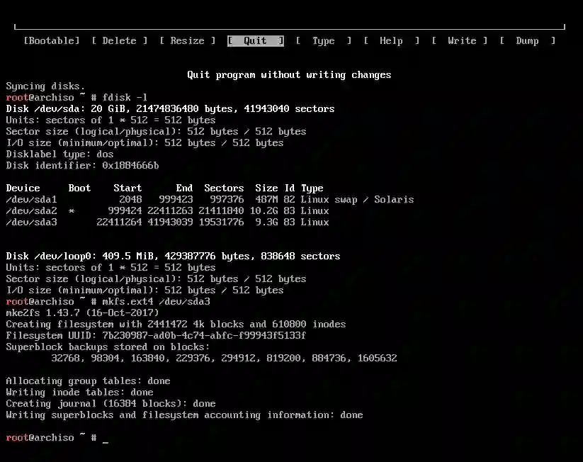 退出 Arch Linux 的‘cfdisk’