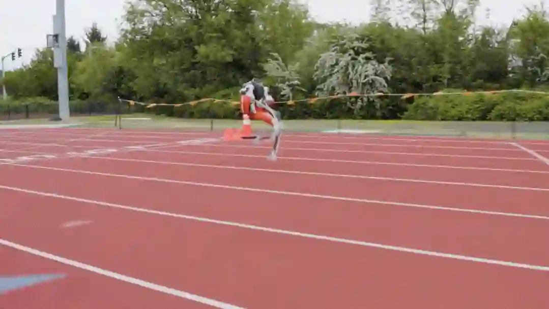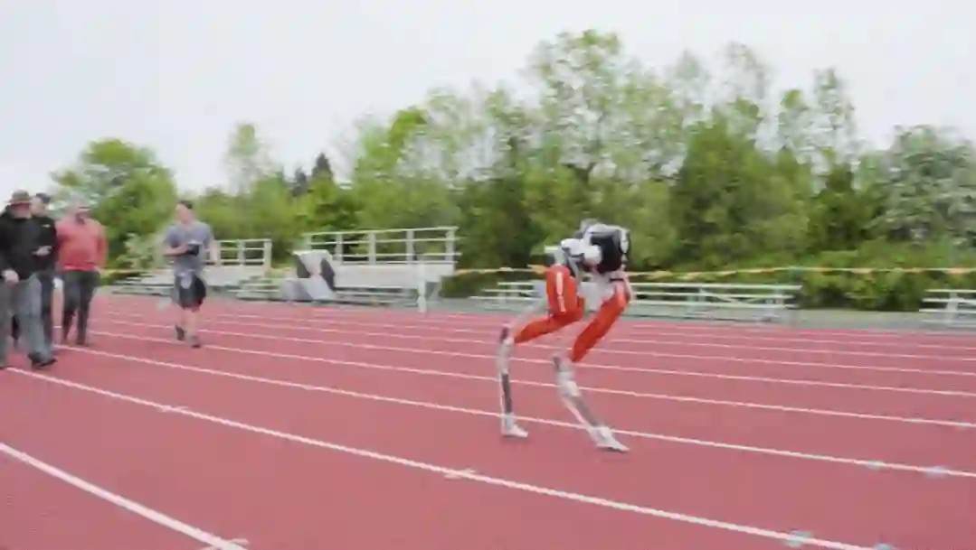 研究人员面临的最困难挑战之一是让它以站姿起跑然后减速直至在终点停下,中途也不会摔倒