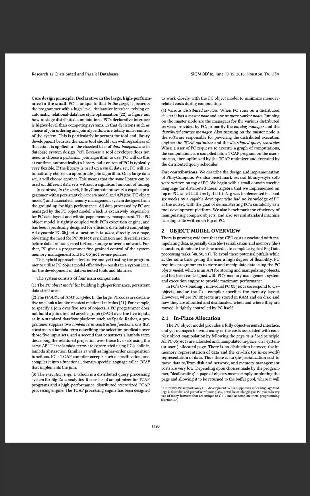 赖斯大学的PlinyCompute将于周四在2018年ACM SIGMOD大会上公布。该团队在同行评审的大会论文(https://dl.acm.org/citation.cfm?id=3196933)中介绍PlinyCompute是“一种专门用于开发高性能大数据代码的系统”。