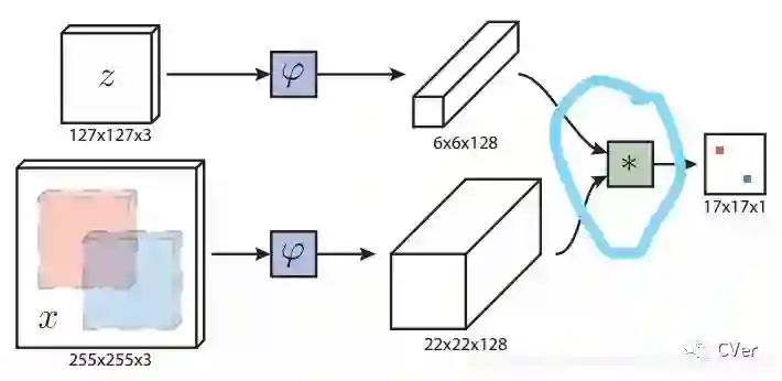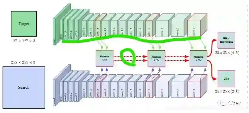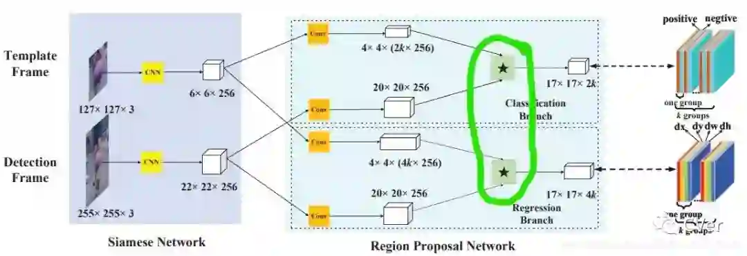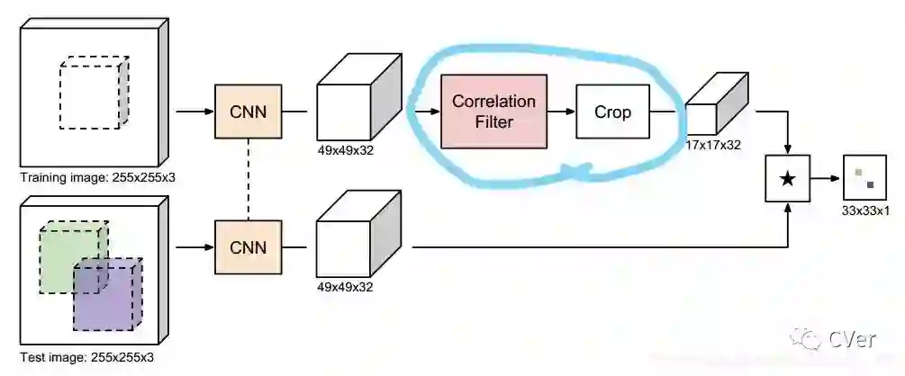这个框图与众不同的是它是一个端到端的跟踪网络,而且速度很快!这篇论文使得基于孪生网络的跟踪器火了起来,让研究者们看到了新的希望。
