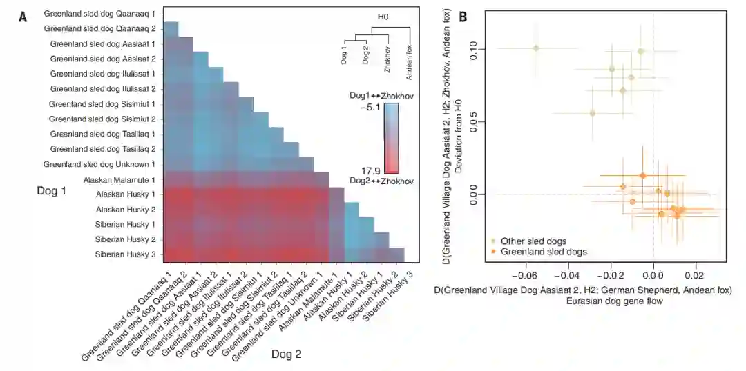 研究人员还发现:与Zhokhov犬相比,现代雪橇犬与其他种类的犬有更多的基因重叠,但具体的分化事件仍有待进一步研究。然而,在现代雪橇犬中,格陵兰犬脱颖而出——其基因组与其他种类的狗重叠最少,这意味着格陵兰犬可能是世界上最古老的雪橇犬。