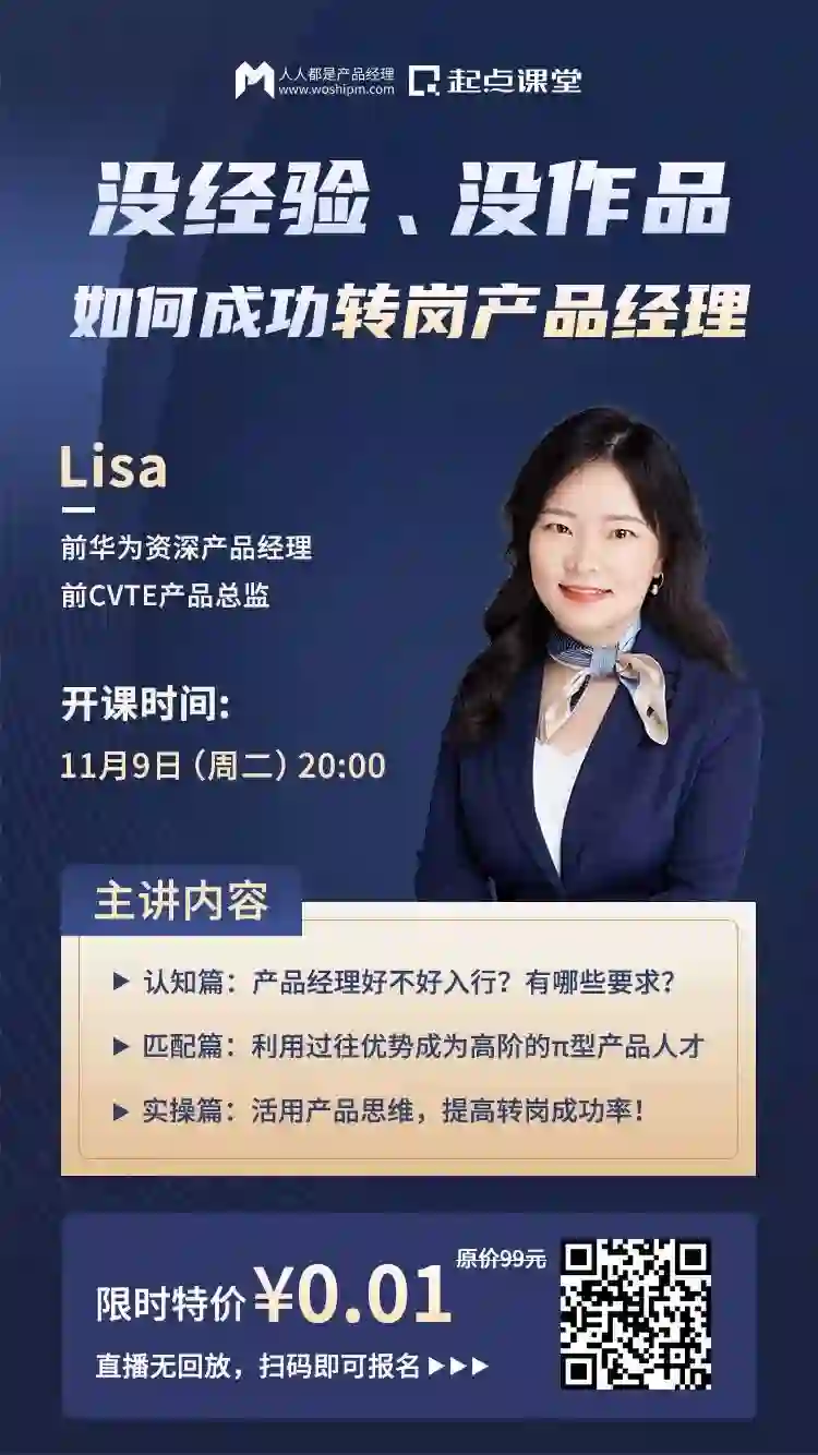 为了帮助更多想要入行/转岗产品经理的同学,我们邀请了前华为资深产品经理@Lisa老师为大家分享她的转岗之路,给你一份实用的转岗指南,制定战略三步走,挖掘自身独特价值,教你活用产品思维提高转岗求职成功率!