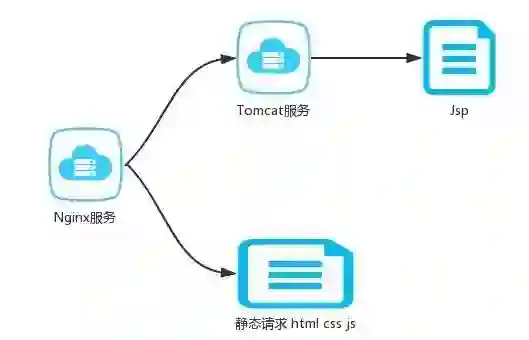 从严格意义上说,Nginx 是属于 Web 服务器,一般处理静态 HTML、CSS、JS 请求;而 Tomcat 属于 Web 容器,专门处理 JSP 请求,当然 Tomcat 也是支持 Html 的,只是效果没 Nginx 好而已。