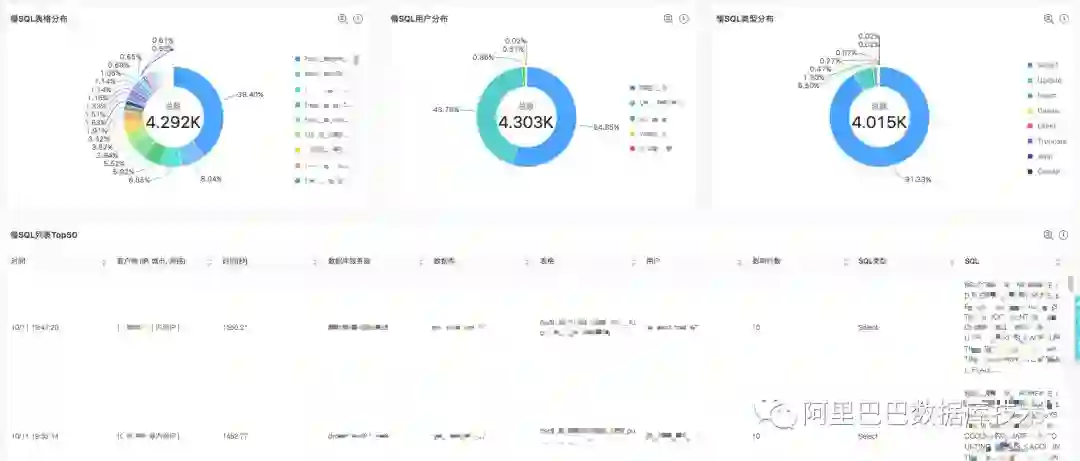 实时分析:依托日志服务,提供 SQL 实时分析、开箱即用的报表中心并支持自定义报表和下钻分析,全面洞察SQL执行状况、性能、安全问题。