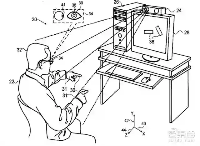 在操作应用上其中涉及的公开专利原理摘要为,一种方法包括接收计算机化系统的用户的身体至少一部分的三维(3D)映射序列,并从3D映射中提取用户头部的3D坐标 。基于头部的3D坐标,识别由用户执行的注视方向以及在耦合到计算机化系统的显示器上,在注视方向上呈现的交互项目。从3D映射中提取指示;指示用户正在特定方向上移动身体的肢体,并且响应于该指示,将所识别的交互项目重新定位在显示器上(如下图示例)。