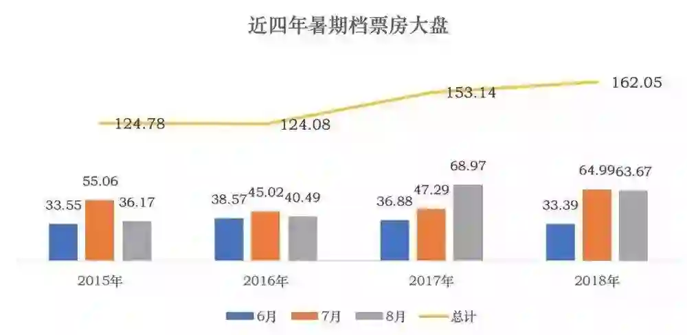 2017年暑期,《战狼2》56亿票房也带动了整体大盘的上涨,最终暑期档大幅上涨近30亿票房。