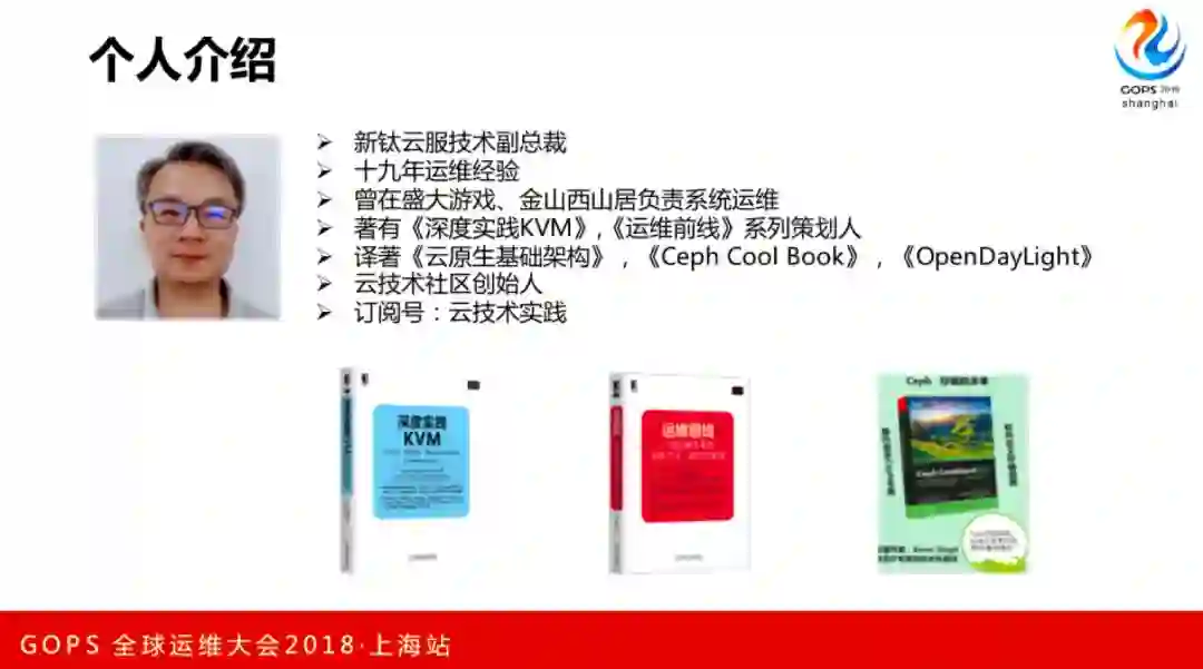 先简单介绍一下自己,我目前在新钛云服工作,工作有19 年了,1999 年参加工作,马上 20 年了。在盛大游戏待了八年,2013 年到珠海金山西山居工作了三年,到 2016 年时到北京中联润通工作,主要做私有云,做了一些国家级的项目。