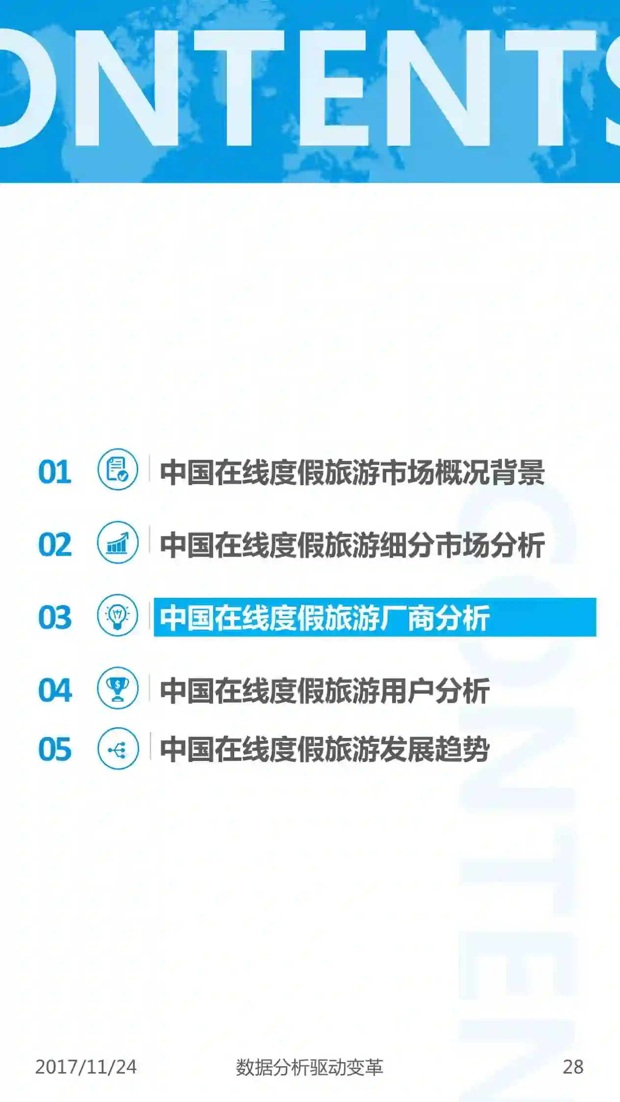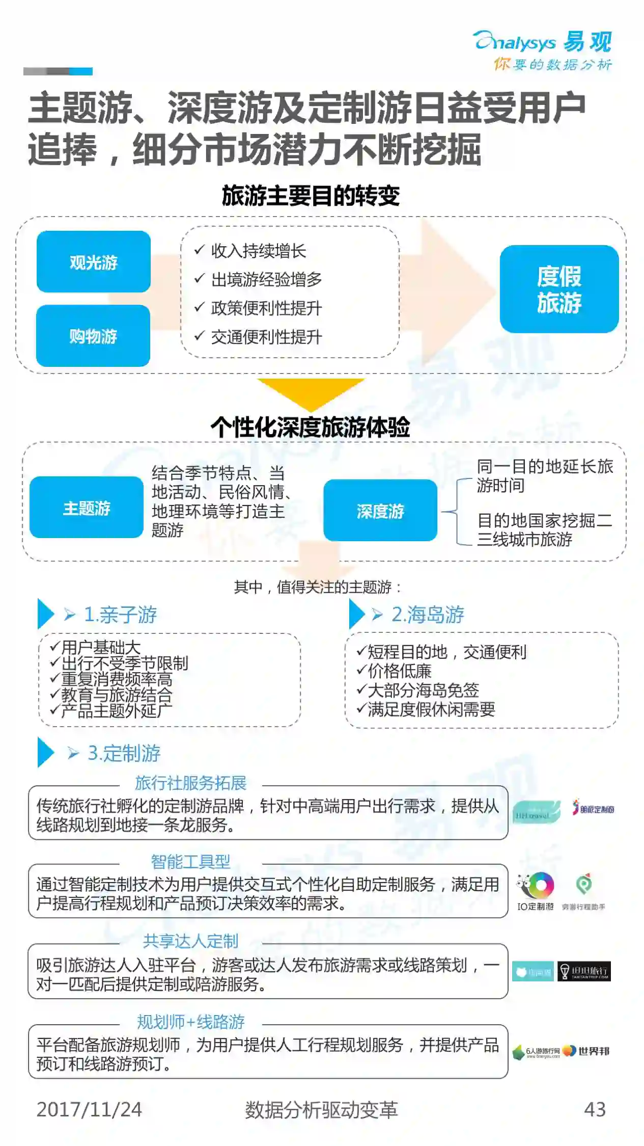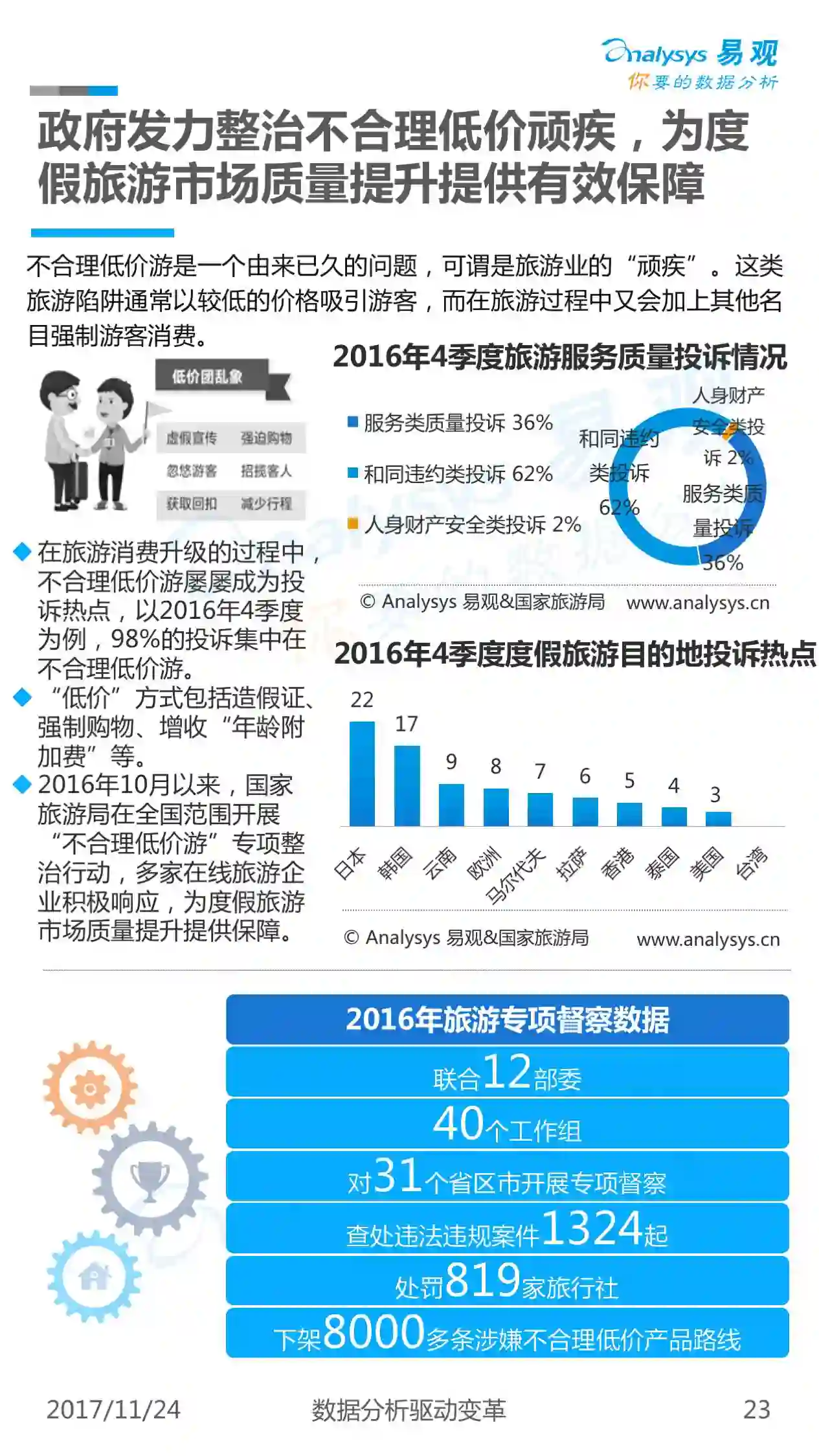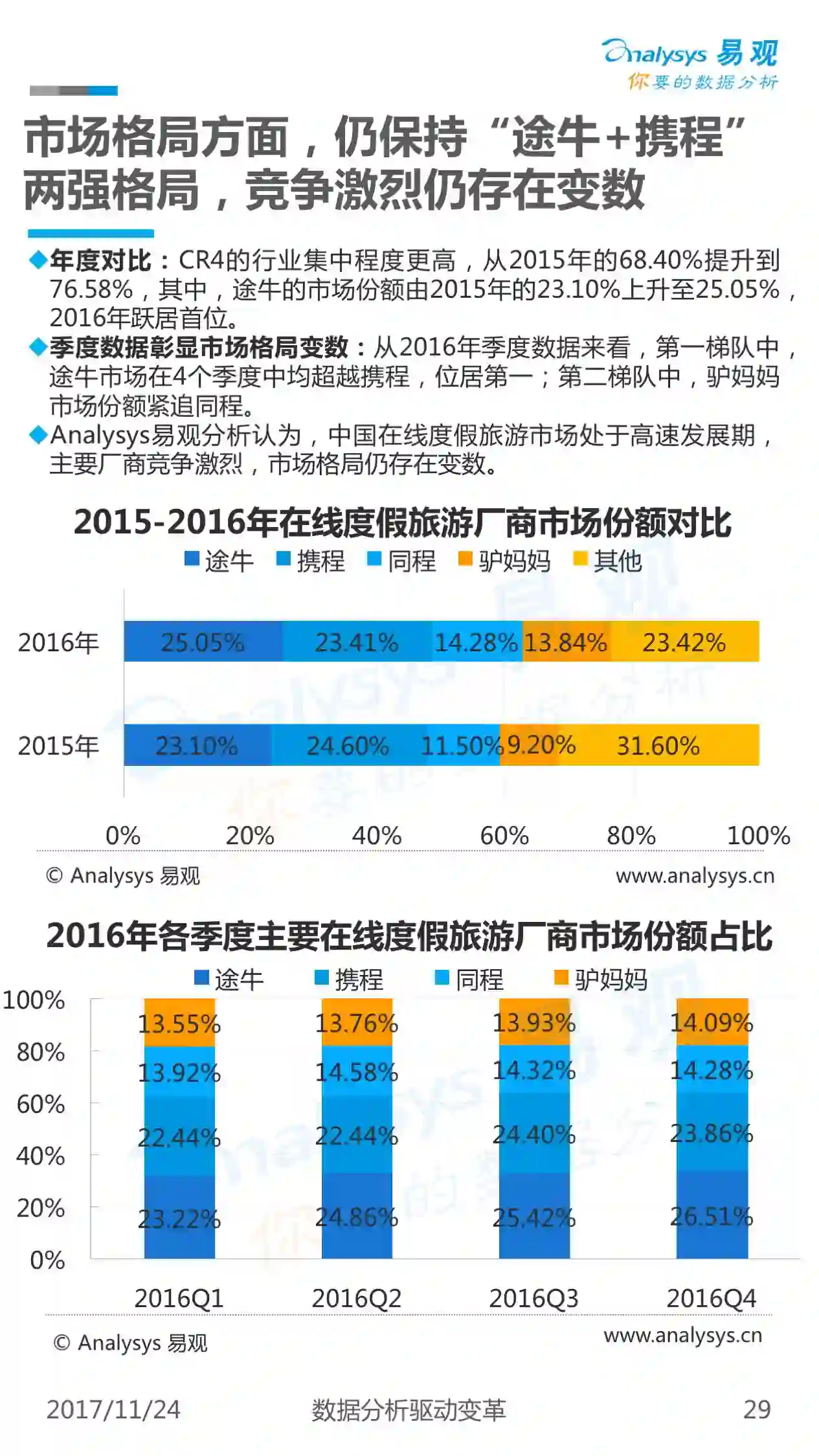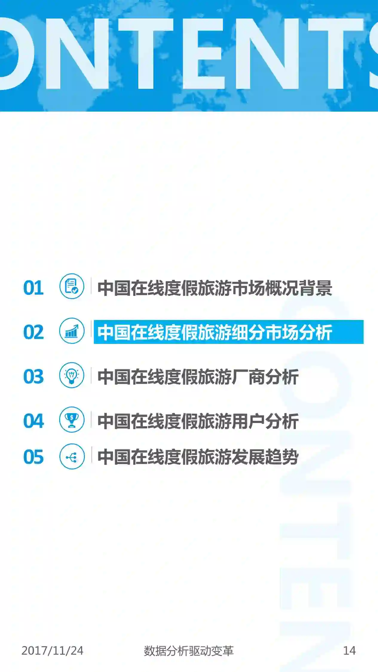消费市场升级和互联网的深度渗透,助推在线度假旅游市场高速发展,2016年在线度假旅游市场交易规模为757.4亿元,同比增长为37.7%,领跑在线旅游及旅游产业增速。2016年在线度假旅游厂商对上下游资源进行集中深度整合,持续优化O2O竞争格局,并拓展出境、国内中长线及周边游三线的产品供给及盈利空间,在线度假旅游整体迈向服务升级、产品多元、深耕品质的时代。