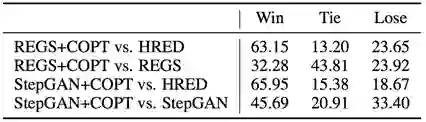 人工评价方面,共有5位标注者在200条测试数据上独立进行了评价。每位标注者在两条回复中挑选出更优的一个,其中的两条回复分别由基线方法和我们的方法生成。结果如表2所示,我们的方法取得了更优的结果。