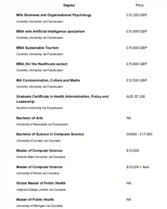 FutureLearn拥有最多的MOOC学位,但与其他供应商不同的是他们的学位往往不比其他在线课程或面对面课程便宜得多。
