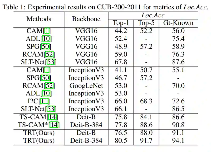 表 1:在 CUB-200-2011 数据集上的定位准确率比较