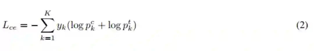 ,与类别标签构建交叉熵损失函数,实现分类训练,如下公式(2)所示。