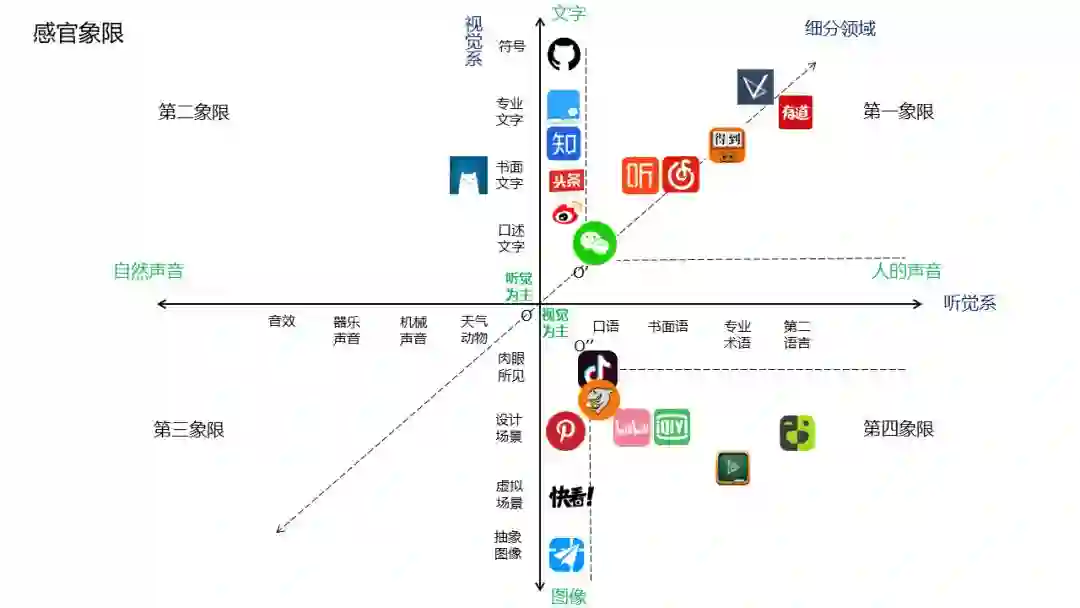 到时候整个内容产品也依然可以按照感官象限的划分方法,去判断自己产品的位置或是选择合适的赛道。