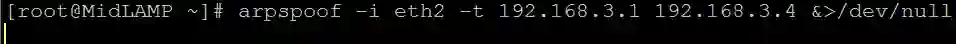 # arpspoof -i eth2 -t 192.168.3.1 192.168.3.4 &>/dev/null