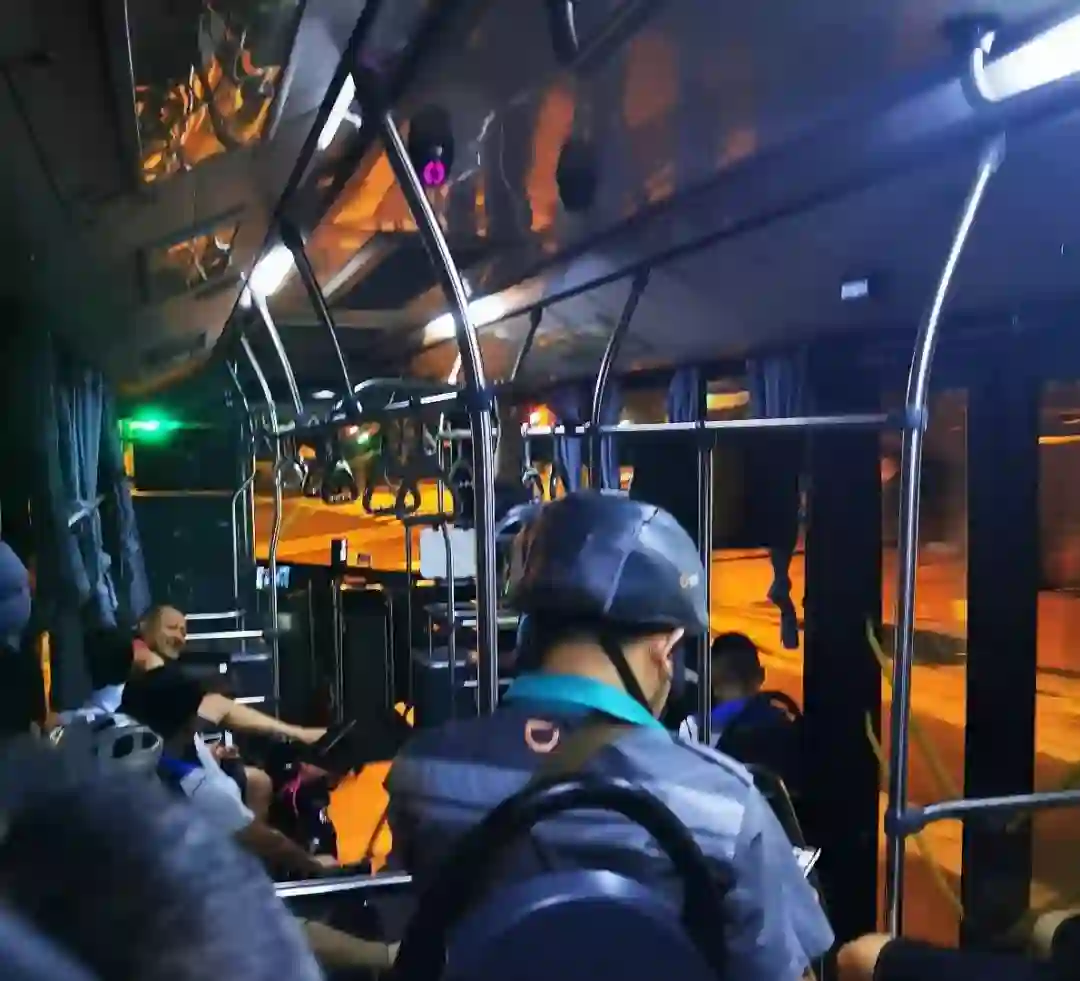 一条5.5公里的路,一班深夜公交,车上是身着蓝、灰制服的“两派人”。