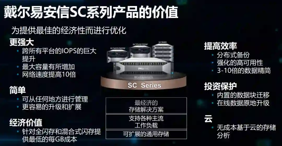 SC全闪存及混合闪存系列集高性能和数据保护能力一体,支持各种主流工作负载与智能的“联邦”结合,提供可根据业务发展而灵活扩展的通用存储,用颠覆性的高性价比为企业带来优于其他中端存储的一流价值,从而顺利适应不断变化的业务需求并确保可以满足未来需要。