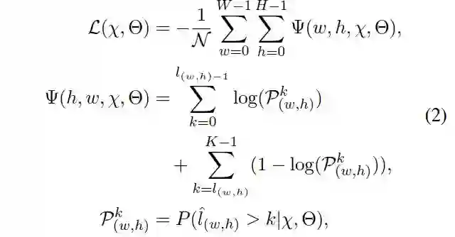 获得离散深度值后,将标准回归问题直接转化为一个序数回归问题,采用softmax回归损失学习在深度估计网络中的参数。