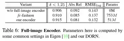 表5 我们的全影像编码器可以比fc类的编码器有高一点的分数,但是显著减少了参数量。