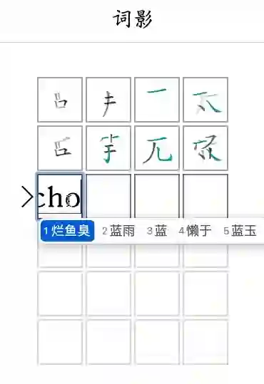 「词影」是我所知唯一采用这条技术路线的中文 Wordle 游戏,于三月底推出。