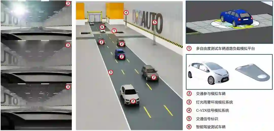 通常在虚拟环境下,可以覆盖更多案例场景的参数空间,确定临界工况,寻找危险工况点,同时获得刻画自动驾驶系统应对临界场景能力的有效模型。但是,目前交通模型与驾驶员模型的仿真精度、车辆系统模型的仿真置信度都存在技术挑战,需要进行实车测试,来比较仿真与真实测试中的行为,测试验证指定场景的系统表现,还有面对自动驾驶汽车时的行为反应模式。这就需要封闭场地测试和公共道路测试。
