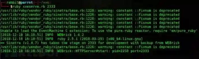 xxeserve是基于ruby开发的,如果懒于自己搭建ruby runingtime,那就丢了parrotsec / kali上吧。