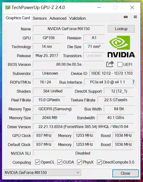 显卡方面,小米笔记本 Air 13.3 增强版用的是和 Air 13.3 独显版相同的英伟达 MX150(2GB 显存),也就是 TDP 为 8W 的低功耗版本,核心频率和显存频率略低于小米笔记本 Pro 15.6 上的高频版 MX150。