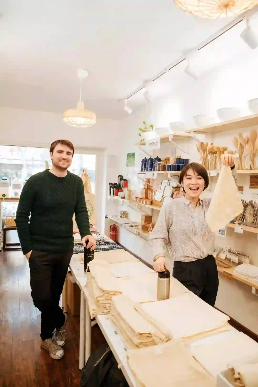 在这个狭长的商店里,所有的货架、桌椅都是余元从废品站或者二手商店淘换来的东西,那些曾经被人们遗弃的二手家具在她的店里清洁干净,摆放整齐,如获新生。店里的商品,除了在购买时不提供塑料袋之外,几乎都遵从于5R原则——可循环利用、替代日常一次性消耗品:金属吸管、网状购物袋、饭盒、保温杯应该属于基本款,还有一些有趣的东西,比如可降解的竹牙刷和女性月事杯(可循环利用12年的卫生巾替代品),散装洗发水和洗衣粉。