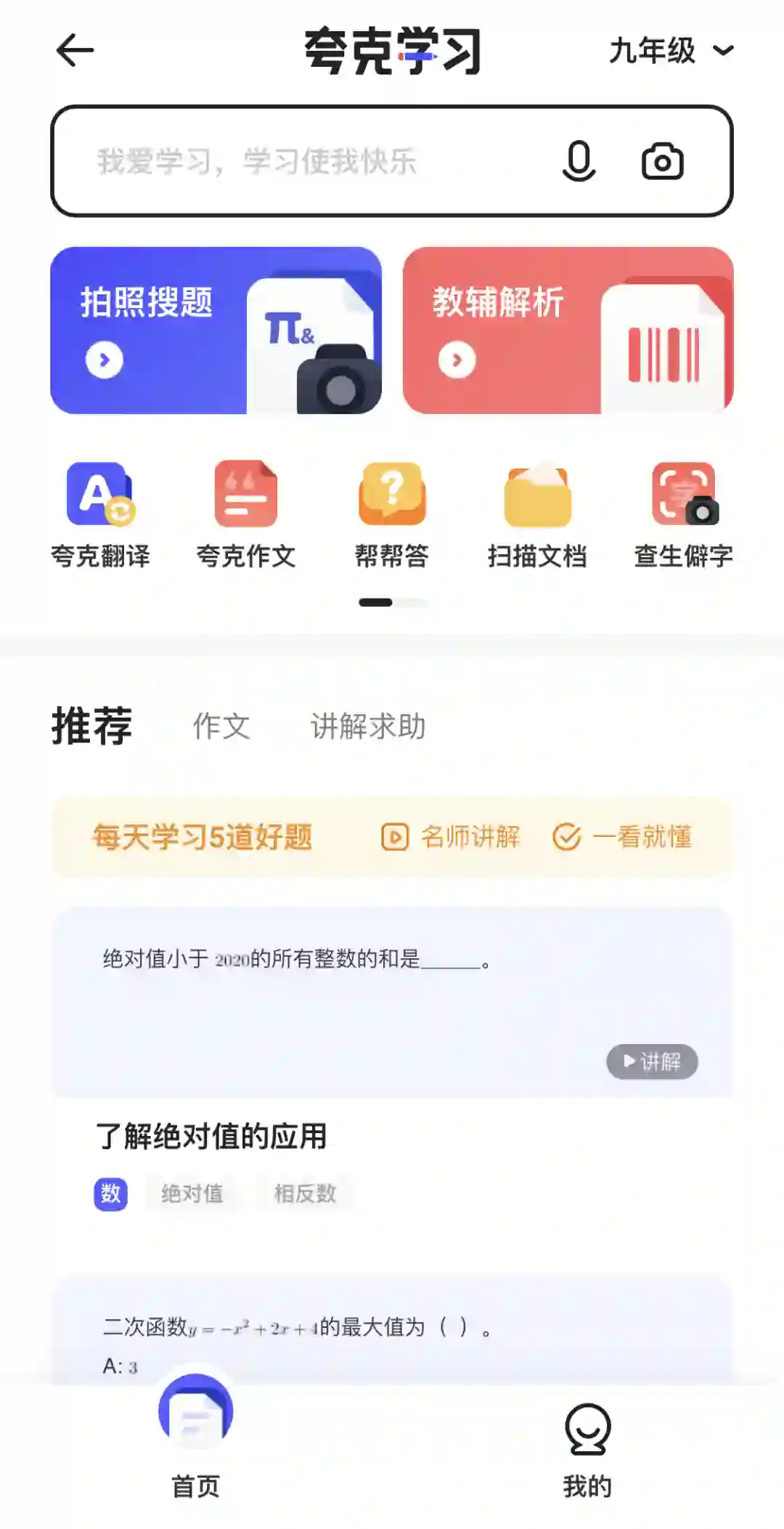 前面也说了夸克有两变,而这第二个大变化是在智能化的牵引下,做了更多场景升级,其中不得不说的就是“学习”和“健康”智能功能。