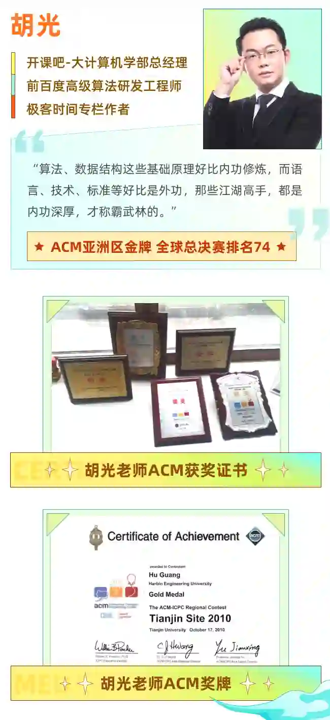 特邀ACM亚洲区金牌胡光船长倾情加盟,带你刷爆算法。