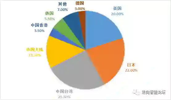 美国不仅在品牌领域有苹果,惠普,戴尔等强势品牌,而且在电子零部件产业链上依旧占据全球大约21%左右,但是美国公司的优势主要是在半导体产品方面。