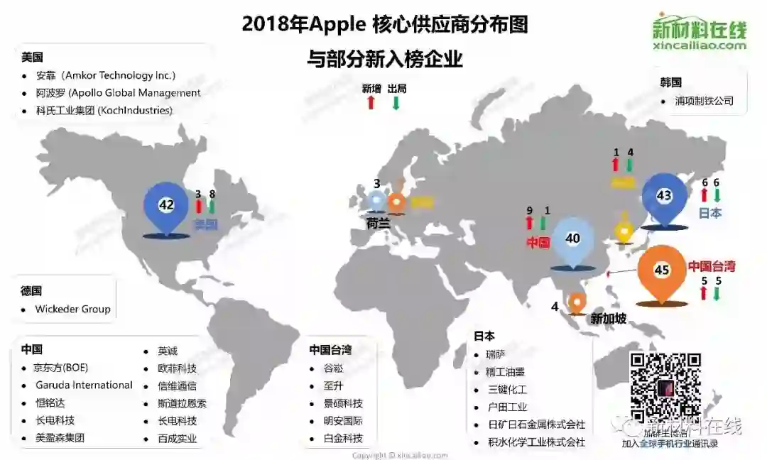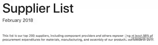 2018年上半年,全球最强大的电子科技公司苹果公司公布了200大供应商的2018版本,用苹果自己的话来说,这200家供应商代表了苹果2017年全球原材料,制造和组装支出金额的98%