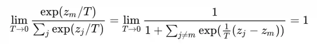 趋于 0 时,正确类别的概率接近 1,softmax 的效果逼近 argmax
