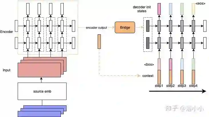 但是这样依然有一个问题: context对于每个timestep都是静态的(encoder端的final hidden states,或者是所有timestep的output的平均值)。但是每个decoder端的token在解码时用到的context真的应该是一样的吗?在这样的背景下,Attention就应运而生了: