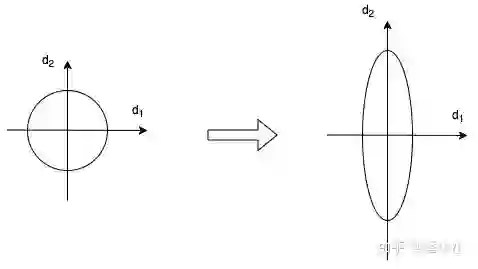 当我们使用梯度下降法做优化时,随着网络深度的增加,数据的分布会不断发生变化,假设feature只有二维,那么用示意图来表示一下就是:
