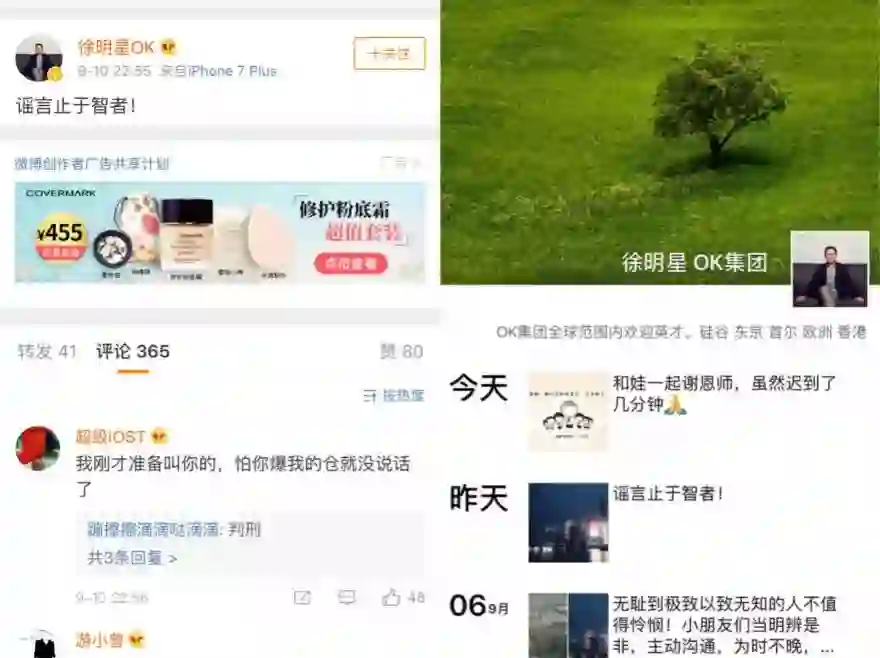 (徐明星的微博和朋友圈发布:谣言止于智者!)