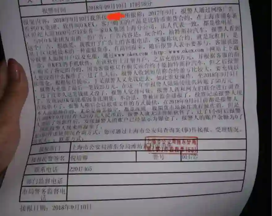 潍坊新村派出所现场,一大早从深圳赶来的维权者B向猎云网控诉OK集团:9月5日17:53分已经发现币圈行情大跌,本想及时止损,但此时OKcoin、OKEx手机App端和网页均无法登陆账户,出现闪退或显示error/更新中的提示。与维权者A类似,“只能眼睁睁看着币价被内幕操作暴跌,自己却无法做任何操作,合计损失近300万元。”维权者B说道。