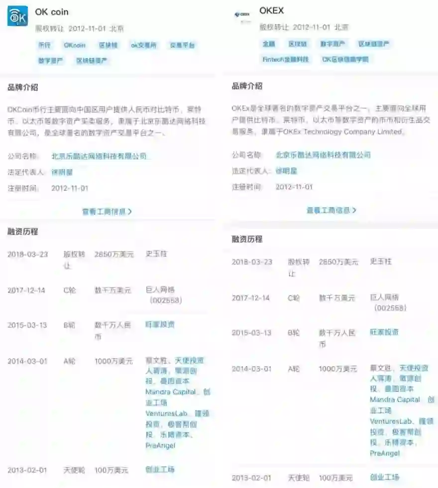 (天眼查内关于OKEx和OKCoin信息)
