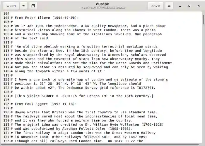 这就是为什么世界时区社区的官方源代码读起来不像文本数据库,更像是一种独特的文学形式:一部分是历史发展(被注释掉的部分),一部分是可由计算机读取的实际代码,还有一部分是琐事参考。