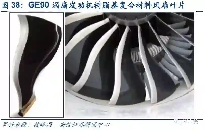 随着民用涡扇发动机风扇叶片涵道比增加直径逐渐增大,风扇叶片减重成为了发展重点。为了降低风扇噪声,民用涡扇发动机风扇一般为单级低压比设计,出口温度低,适合用于低温环境的低密度高比强度的树脂基复合材料实心叶片正在替代钛合金空心叶片成为主流。