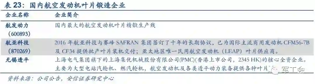 目前在航空发动机预叶片锻件领域,英国、美国、德国和日本走在世界前列,技术实力雄厚,依托高端的生产设备及先进的加工工艺,能够生产出大尺寸、高精度、高性能的产品,占据着高端市场。国内企业目前技术主要生产厂商是航发动力、无锡透平叶片有限公司和无锡航亚科技股份有限公司。