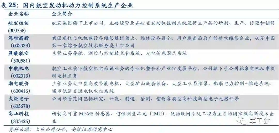 动力控制系统核心部件控制器方面,航发控制作为行业龙头,已经垄断军用航空发动机控制系统领域市场份额。国内海特高新、晨曦航空等民营企业也具备一定的技术实力,试图进入市场。