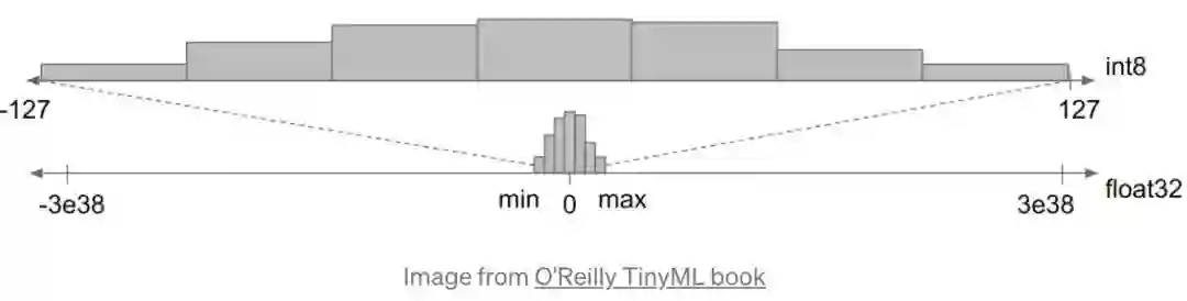 该方法用低精度的参数去学习一个同样效果的模型,这种方式提升了模型的处理能力和效率。这种方法主要是把 float 压缩到 int 8 上,如下图所示: